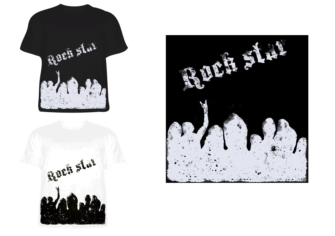 Fashion t-shirt design idea, exploring handmade imagery, followed by computer editing.