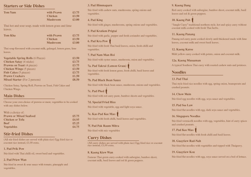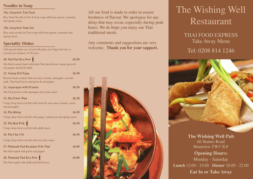 Three fold menu design for a local thai food take away restaurant, The Wishing Well.